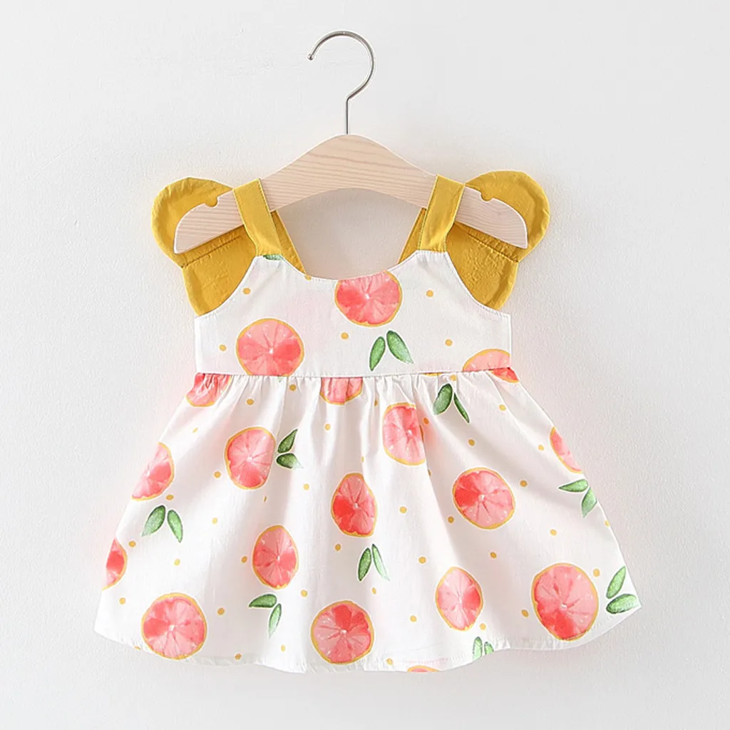 Платье принцессы с принтом фруктов и персика для маленьких девочек; Повседневная одежда