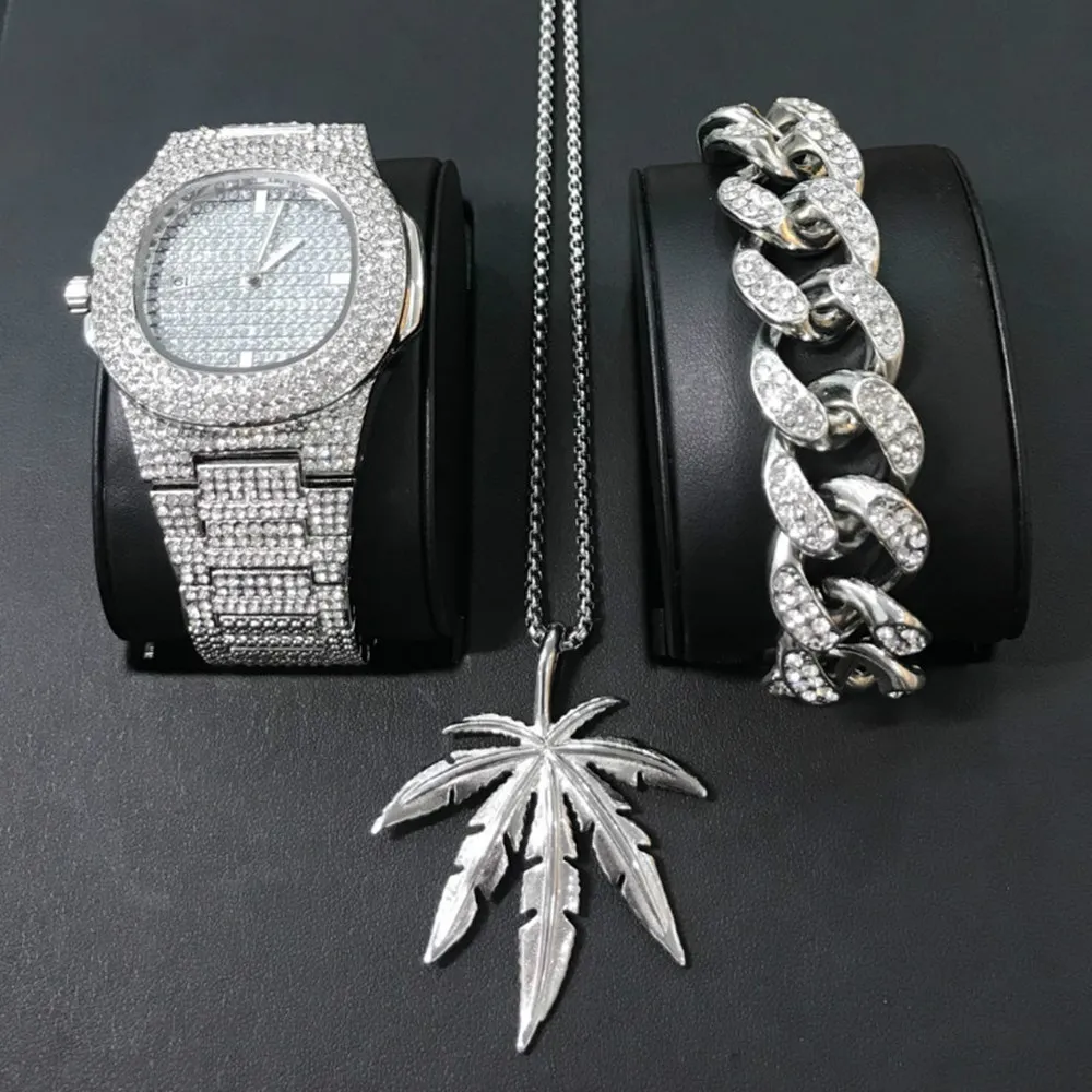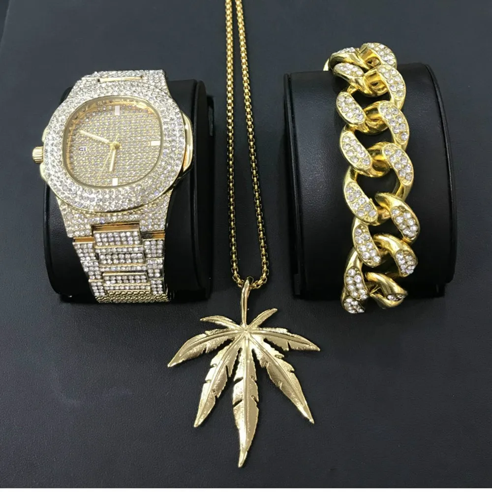 Часы: 100% Новый бренд Лабораторные алмазы камни на браслете Нержавеющая сталь сзади Позолоченный Часовой механизм: кварцевый (Япония) Батарея в комплекте. Чехол Размеры: 43 мм (Диаметр) Вес: 120 грамм Замок: с отворотом Пол: Для Мужчин's Съемные звенья (регулируемые) Роскошный стильный чехол-накладка Упаковочный лист Часы-1 шт. 1 * ожерелье 1 * умный Браслет 1 * Подарочная коробка в комплекте Браслет: Браслет из нержавеющей стали в стиле хип-хоп знаменитостей Покрытие Нержавеющая сталь Высокое качество