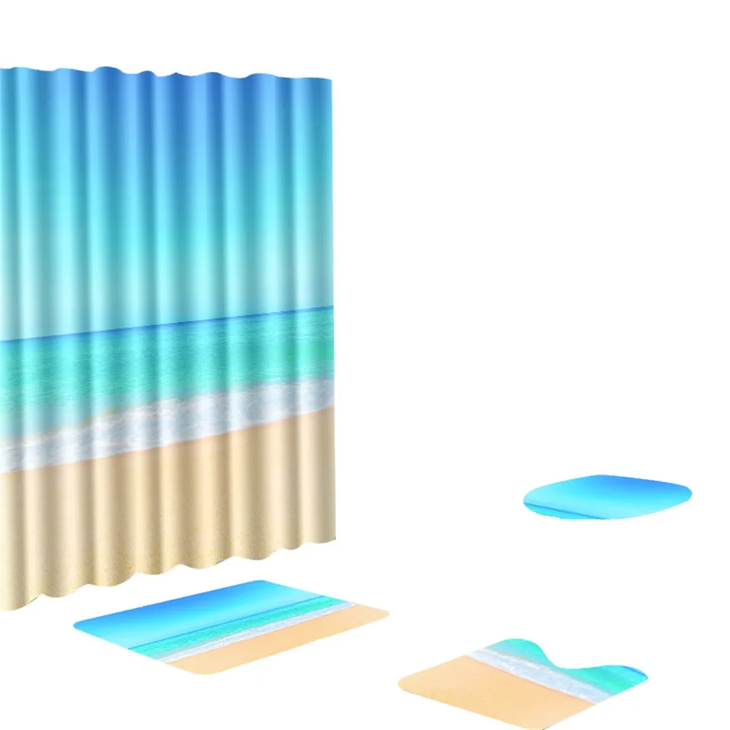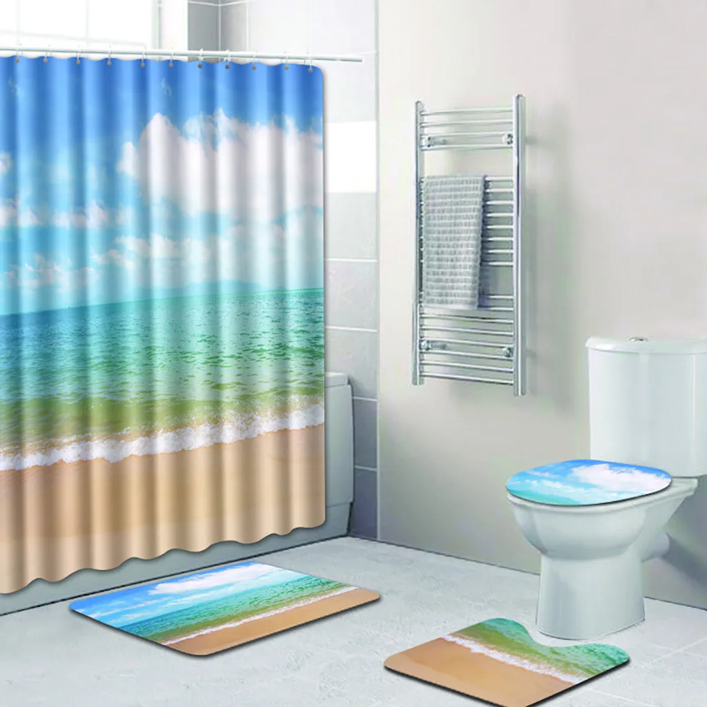 Ouneed 4 шт. голубое небо пляж печать Ванная комната душ занавес набор нескользящий узор водонепроницаемый Туалет Душ занавес крышка мат набор новый