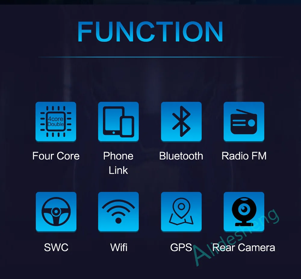 Главные особенности: Чип процессора: MTK8227/ Cortex-A7 Основная частота Процессор: 1,5 ГГц * 4 Флэш-память (внутренняя память): 32 ГБ Формат Мультимедиа: AVI ASF MKV. .. FLV. .. RMVB. .. WMV RM MP3. .. MOV MPEG. .. VOB Подключение к смартфону, зеркальная связь, двойное управление Полный емкостный сенсорный экран управления Встроенный Bluetooth 4,4, свободные руки, телефонная книга ● A2DP воспроизводит музыку, начиная с мобильный телефон и до радио 9 "1024*600 HD цифровой дисплей ●Android системы ● Встроенная флеш-память 2 ГБ DDR3 32 Гб ● Встроенный Wi-Fi Вход камеры заднего вида Интегрированный усилитель на полевых МОП-транзисторах 4x50 Вт FM объединяет 18 предварительно настроенных мест ● Диапазон частот FM: 87,5-108 МГц Два задних входа USB ●Steering колесо управления Материал: металлический пластик Место установки: консоль для автомобиля Предварительно установленная карта: sygic Navitel (опционально) Тип экрана: цифровой сенсорный экран Размер экрана: HD 2.5D 9 дюймов Разрешение экрана: 1024x600 Язык OSD: английский, русский, немецкий, французский, итальянский, испанский, Арабская, иврит, японский, чешский, португальский, Римский, турецкий, корейский и т. д., 60 языков. И многое другое Вход AC/DC 14,4 V.