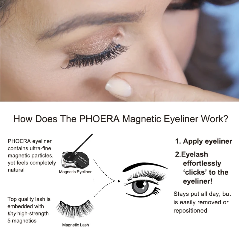 2. Магнитная подводка для глаз не только легко скользит по линиям, наш вкладыш фиксирует Магнитная ресница на месте, как магия.
