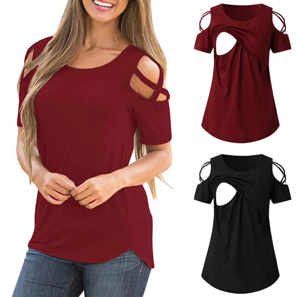 Женские топы для грудного вскармливания с коротким рукавом, с лямками, с открытыми плечами, футболки