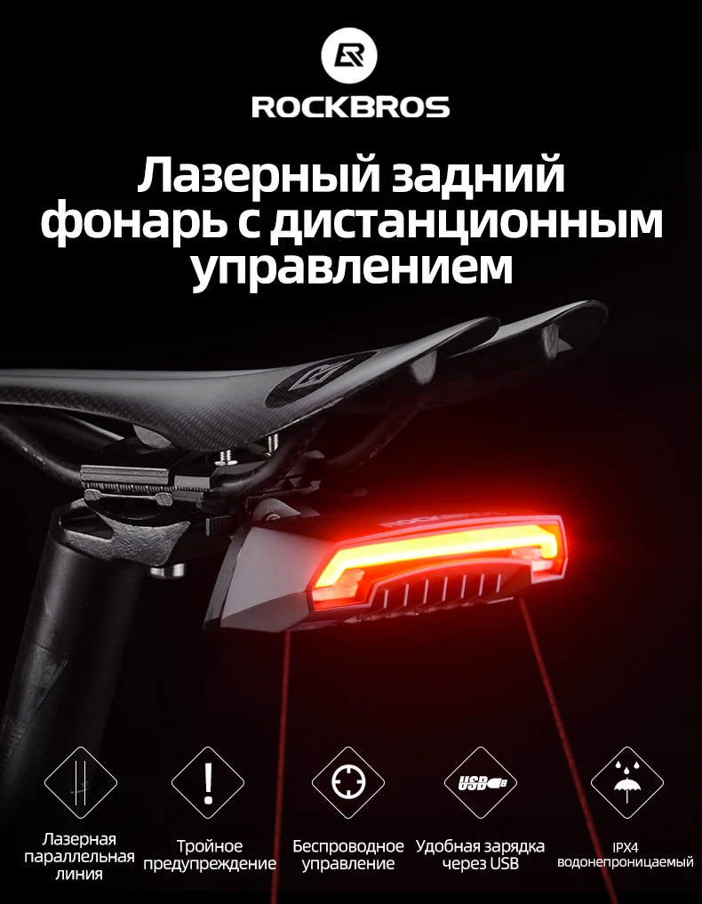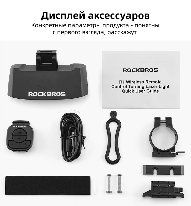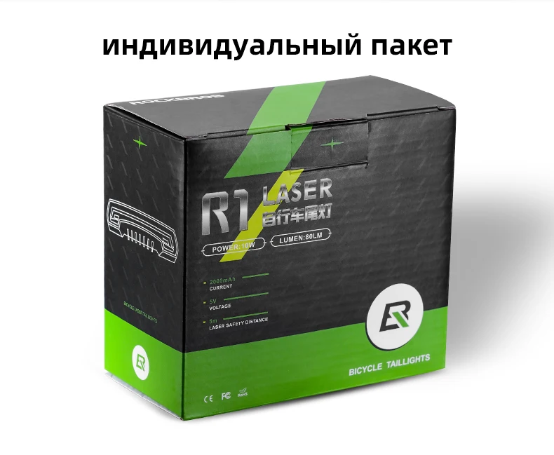 Бренд: ROCKBROS Вес: около 125 г Батарея: 2000 мА-ч Старт расстояние: около 5 м Зарядный ток на входе: DC5V/800 м Применение температуры: -20 ℃ - 60 ℃ Красный светло-желтый сигнал поворота, красный лазерный луч