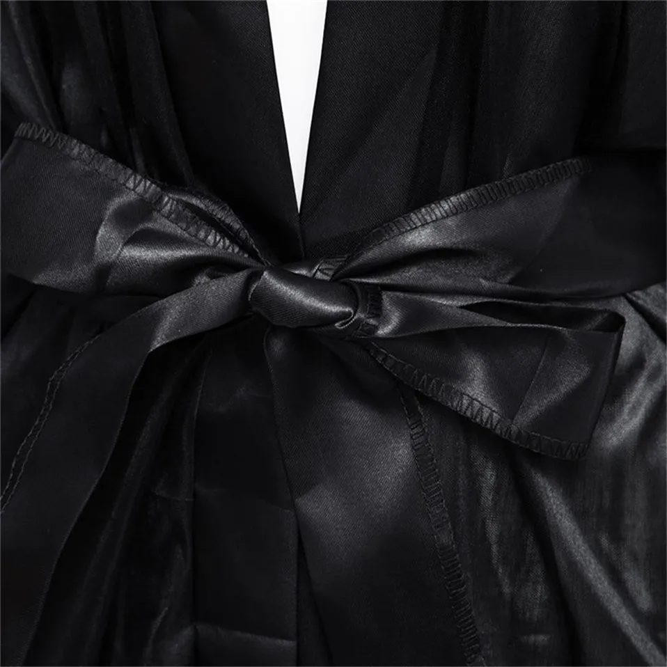 Женский прозрачный халат Yomocarajox, черный Халат большого размера с глубоким v-образным вырезом, сексуальные эротические Ночные сорочки
