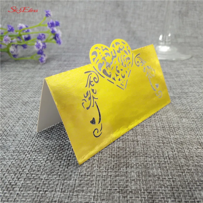 Свадебная вечеринка Роскошные День рождения пригласить карты 10/50/100 шт лазерная резка стол в форме сердца визитная карточка места 6z