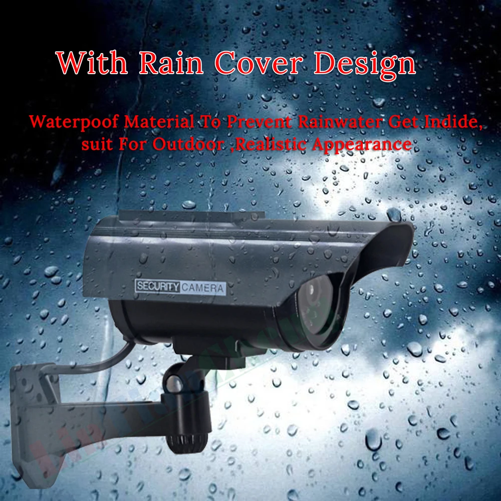 Почему я должен выбать именно его? 1. Очень реалистичная Виртуальная камера может предотвратить воров от совершения правонарушений, подходит для использования в помещении или на улице. 2. Регулируемый кронштейн, легко установить, не требуется проводка. 3. Солнечная панель или 2 перезаряжаемые батареи (без батареи) 4. С красными светодиодными лампами реальность выглядит на виртуальной камере видеонаблюдения, которая имеет тот же размер, что и настоящая камера, что экономит затраты на мониторинг.