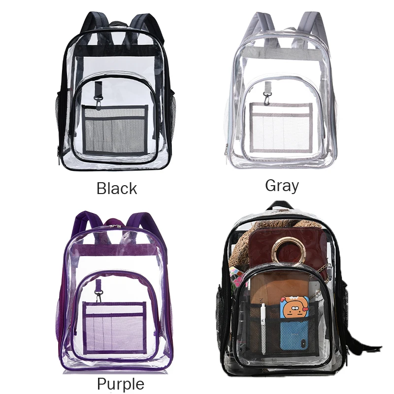 Прозрачный ПВХ прозрачный рюкзак для школы с несколькими карманами