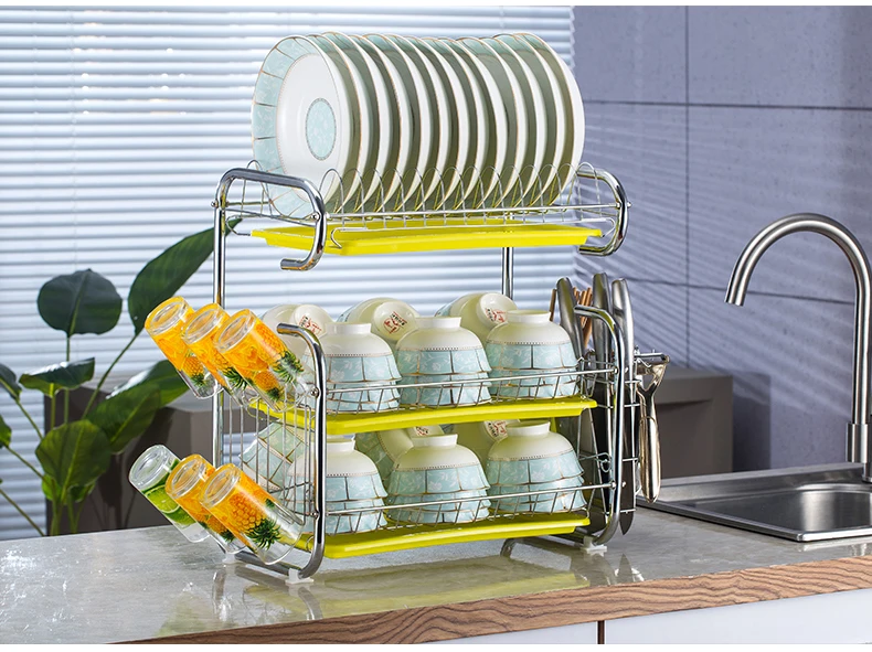 3. Наши полки для посуды сконструированы в 3 слоя, чтобы вместить больше мисок и тарелок, используйте наши полки для посуды, чтобы лучше управлять и хранить ваши кухонные счетчики, держа вашу кухню подальше от грязных, скользких, щедрый и изысканный стиль, который делает его подходящим для большего числа семей.