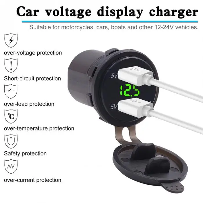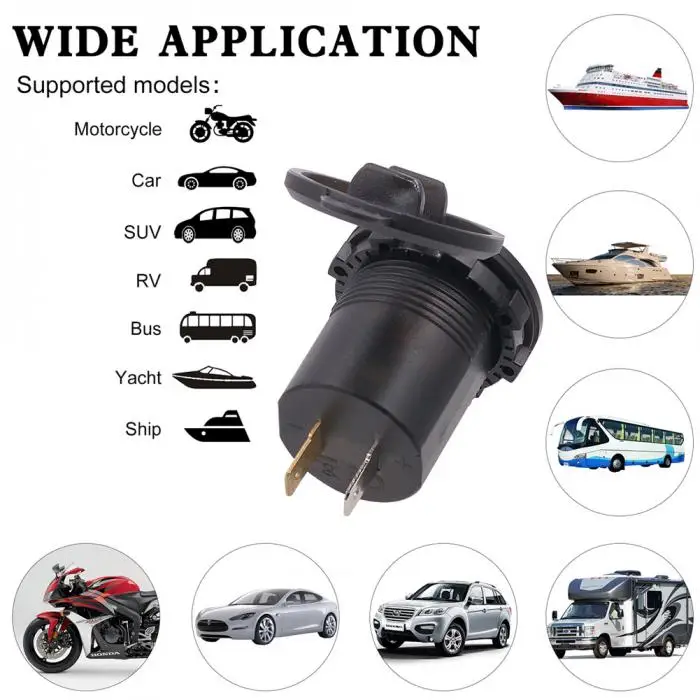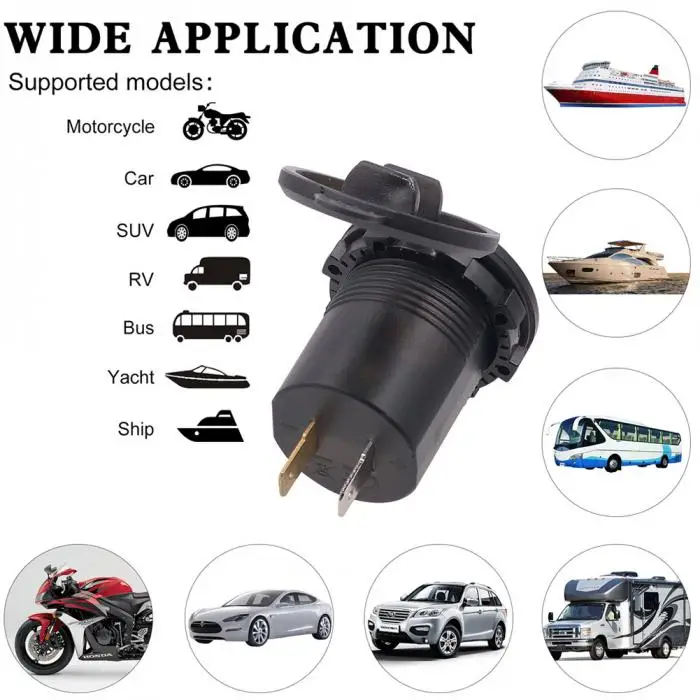 Совместимость с большим количеством устройств:Это зарядное устройство USB подходит для DC 12-24 V автомобиля, лодки, морской, мотоцикл и т. Д.