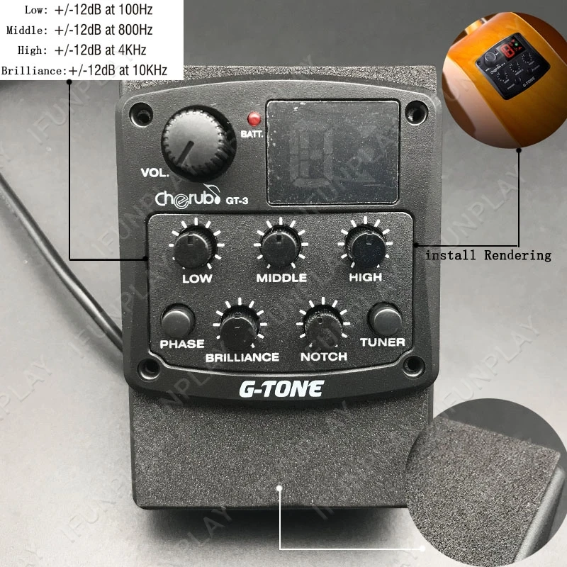 Cherub гитарный эквалайзер, система преампа, фазовый эффект, аксессуары для гитар, хроматический тюнер, акустическая реверсивная задержка GT-Series Комплектация: