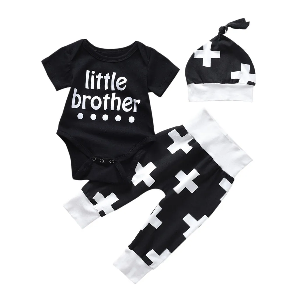 Infant Baby Boy Toddler Letter Cartoon Printed Romper Tops+Pants+Hat Outfits Set