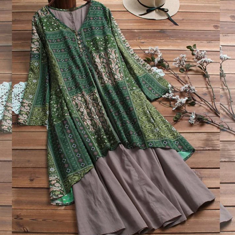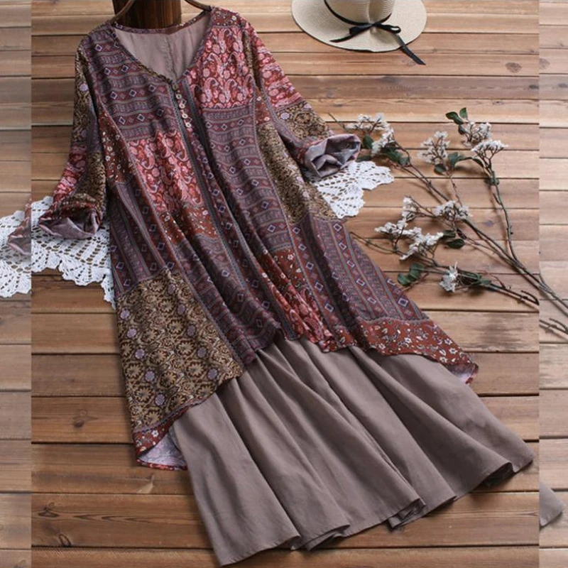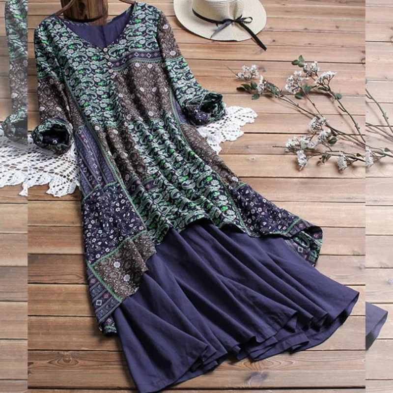 * Описание товара: повседневный, свободный, v-образный вырез, длинный рукав, винтажный, принт