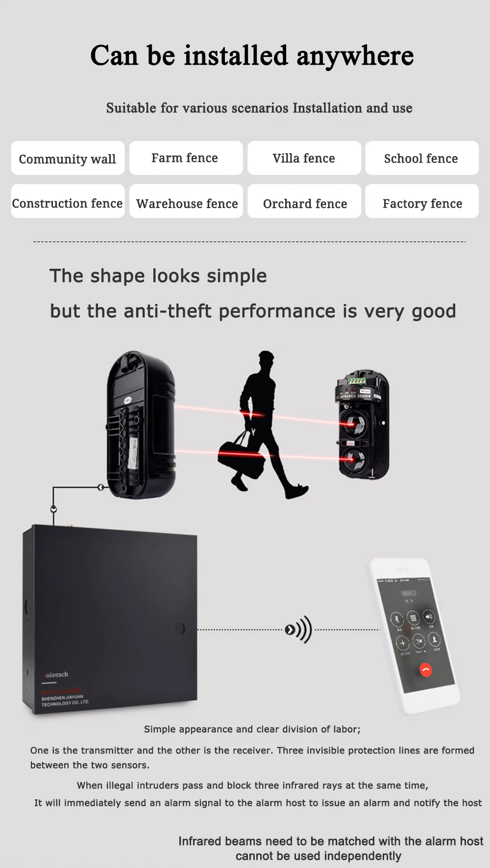 Наружный 20 м ~ 150 м настенный оконный фотоэлектрический инфракрасный двухлучевой детектор