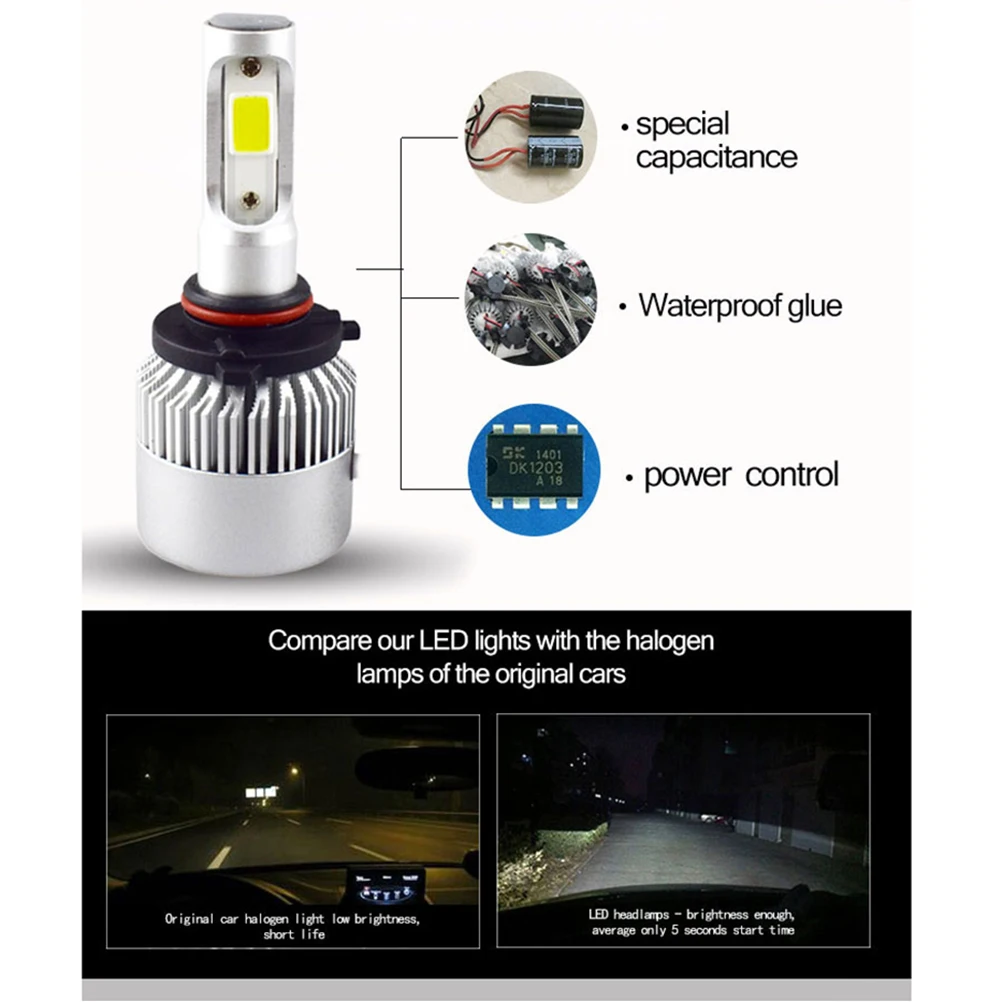 2 шт. S2 светодиодные лампы для фар 36 Вт 9-32 В 8000лм водонепроницаемые дальнего света ближнего света интегрированные фары головного света автомобиля (9005)