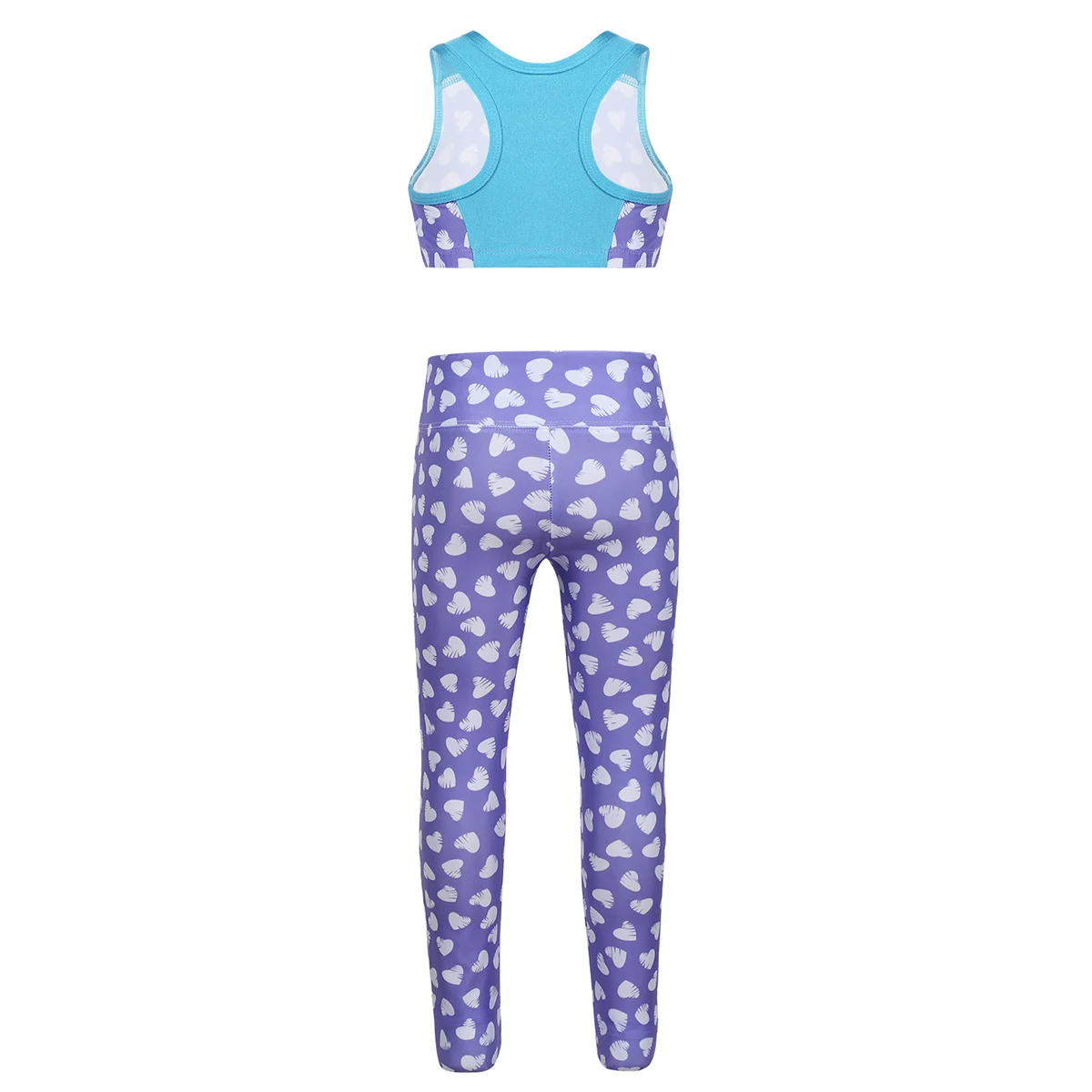 Гимнастический костюм изготовлен из полиэстера и спандекса, ручная стирка. Таблица размеров означает возраст для девочек, но только для общего руководства. Укороченный топ без рукавов, круглый вырез, принт с милым рисунком, спинка-борцовка. Цвет сзади. Подходящие леггинсы полной длины с широким эластичным поясом. Эластичная и гладкая ткань, удобная и мягкая в носке. Идеально подходит для выступлений на сцене, занятий танцами, гимнастики, занятий спортом или повседневной носки.
