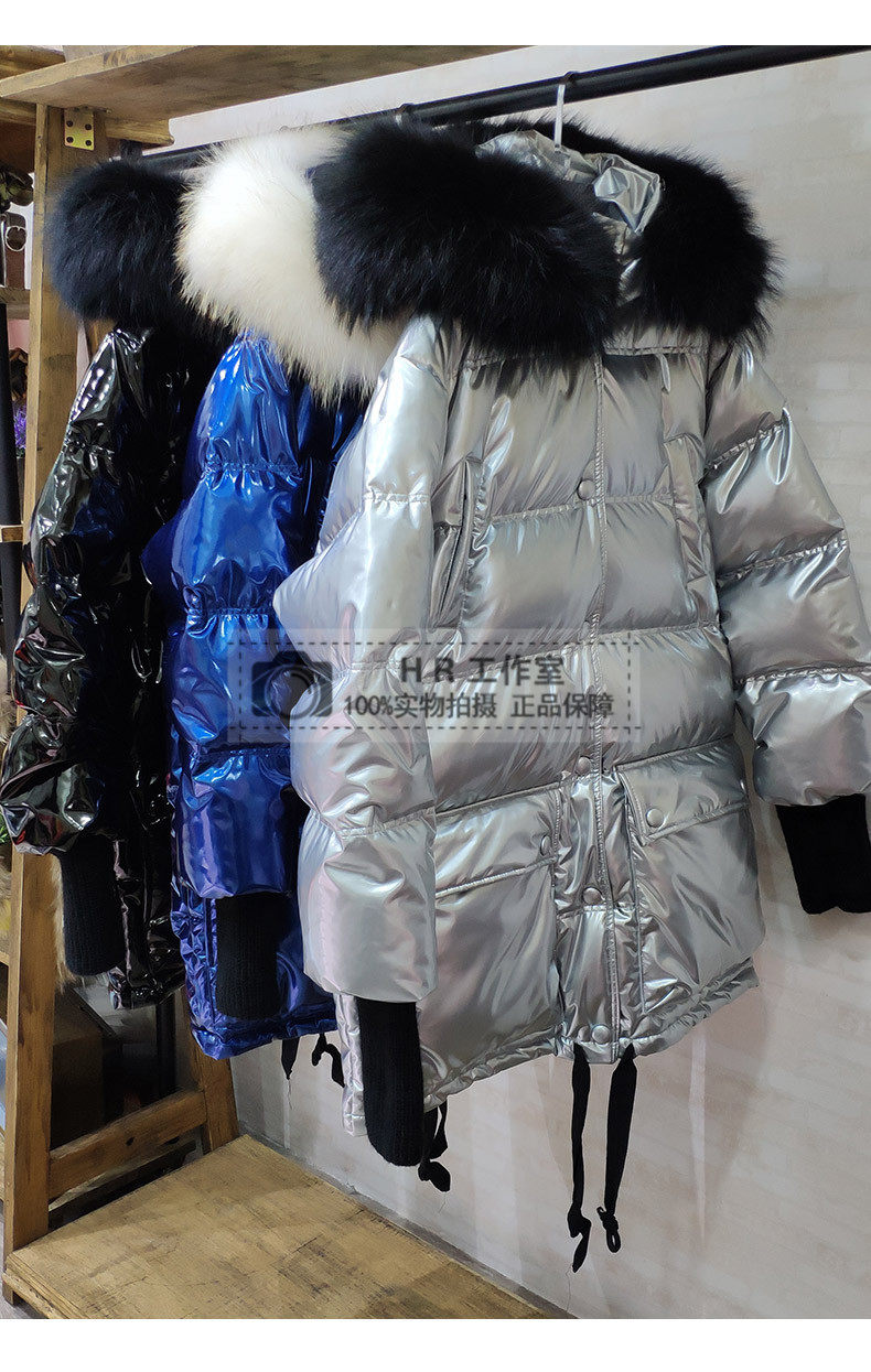 Материал:Натуральный мех енота меховой воротник+Белый пуховик на утином пуху Iinner