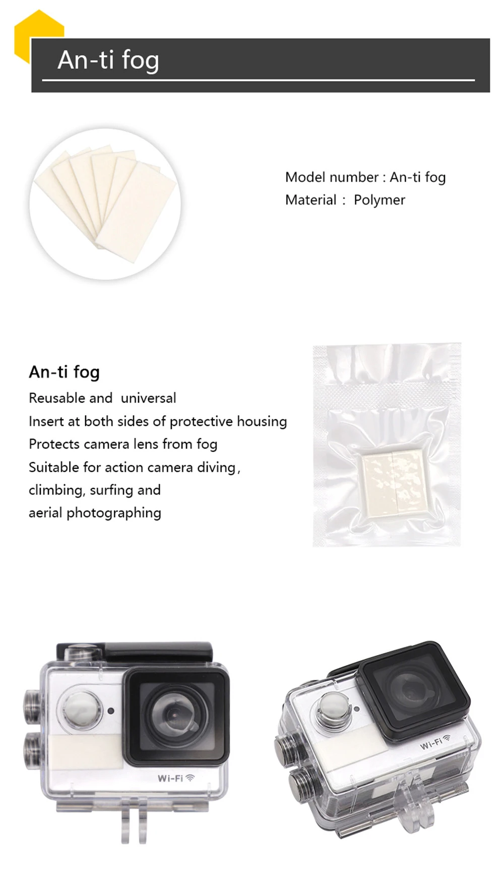 1. Высококачественный абсорбирующий материал: Изготовлен из высококачественного силикагеля на целлюлозном волокне 2. Предотвращает запотевание: Используйте в холодном или влажном климате, чтобы избежать избыточной влаги, нарастания на объектив и внутри камеры 3. Многоразовые: вставки могут использоваться несколько раз. 4. Может быть использован в любых устройствах, где накопление влаги вызывает проблемы