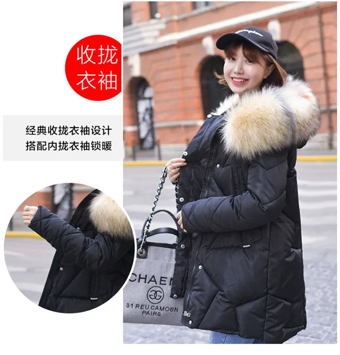 Женская зимняя Толстая теплая пуховая хлопковая куртка Новейшее элегантное пальто с меховым воротником и капюшоном Свободное офисное пальто большого размера для женщин 287