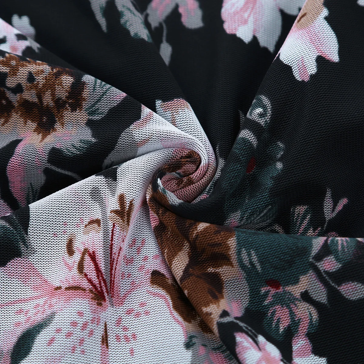 Вырез на шее с застежкой на пуговицы, уникальный дизайн с цветочным принтом и сетчатой спинкой, балетная линия с вырезами.