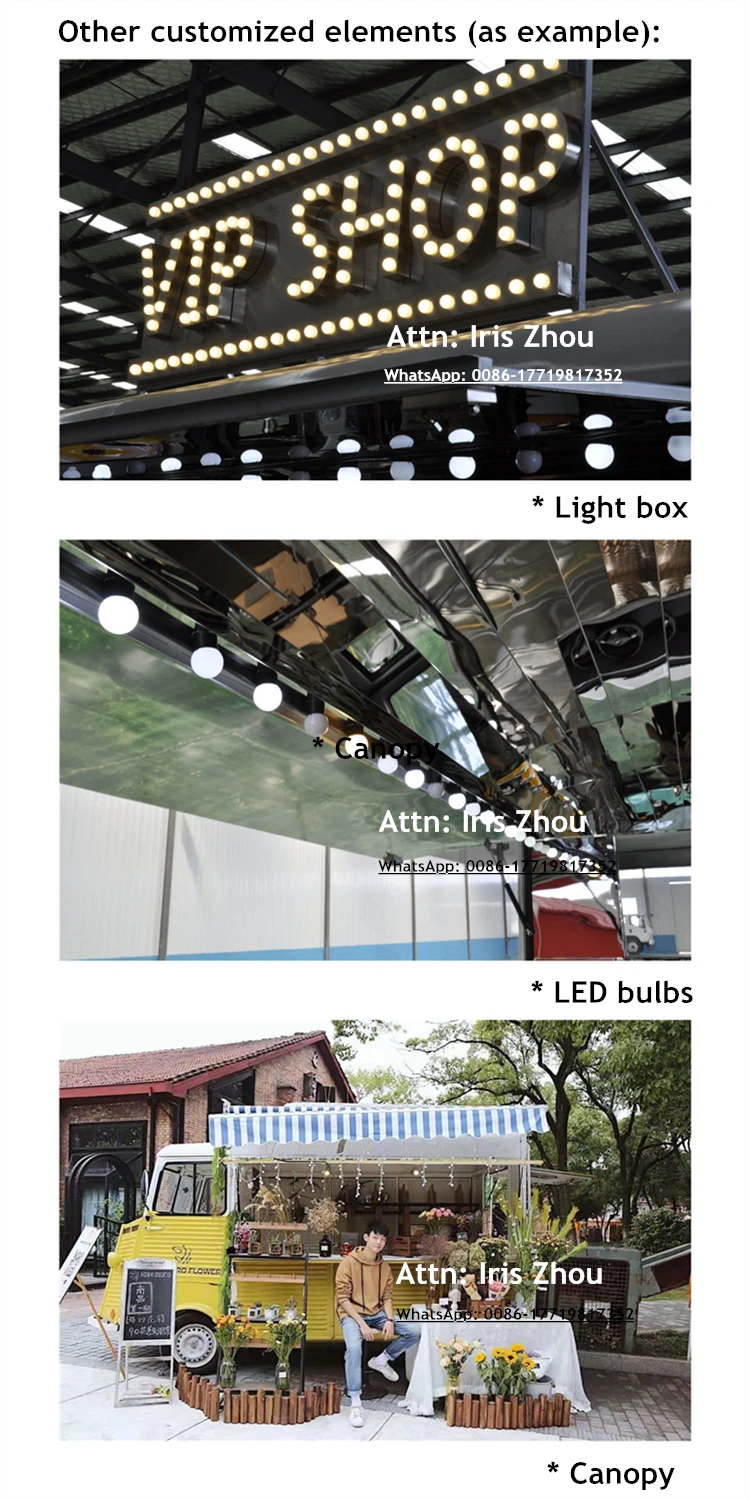 4. Что касается размеров пищевых грузовиков, пожалуйста, обратите внимание, что возможны незначительные отклонения в размере из-за ручного измерения, пожалуйста, будьте осторожны, если вы беспокоитесь об этом.