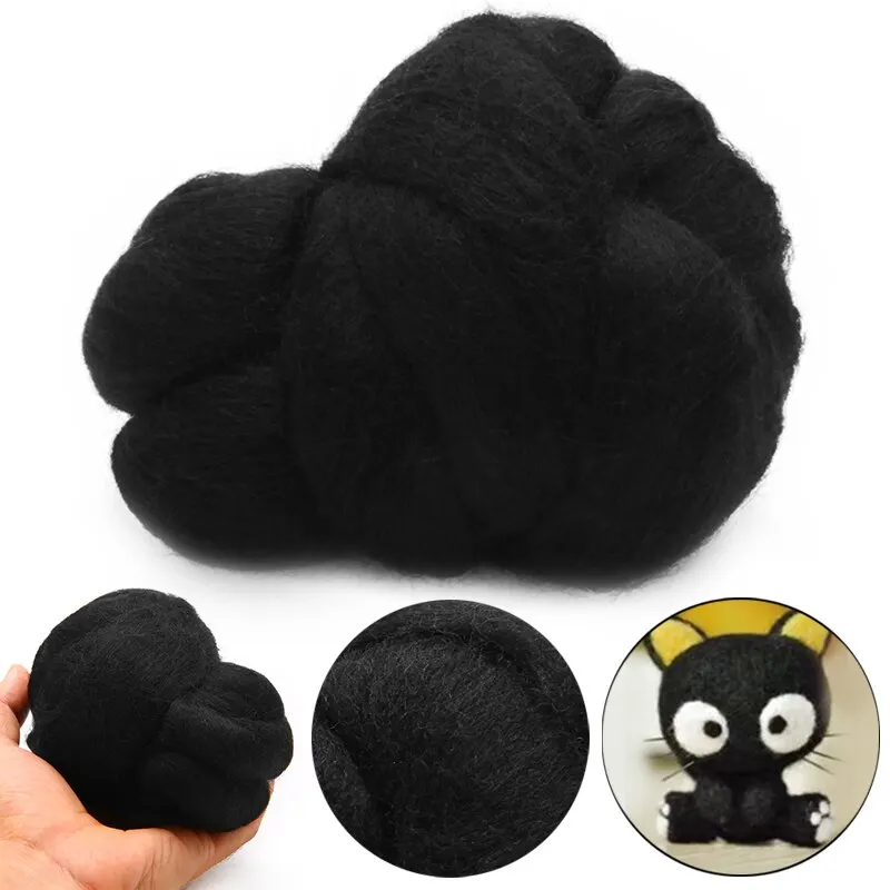 50 г Черная Мериносовая окрашенная шерсть Топы ровинг валяние Шерстяное волокно для Игла DIY валяние куклы подарки в виде животного Рождественское украшениеUS $3,98