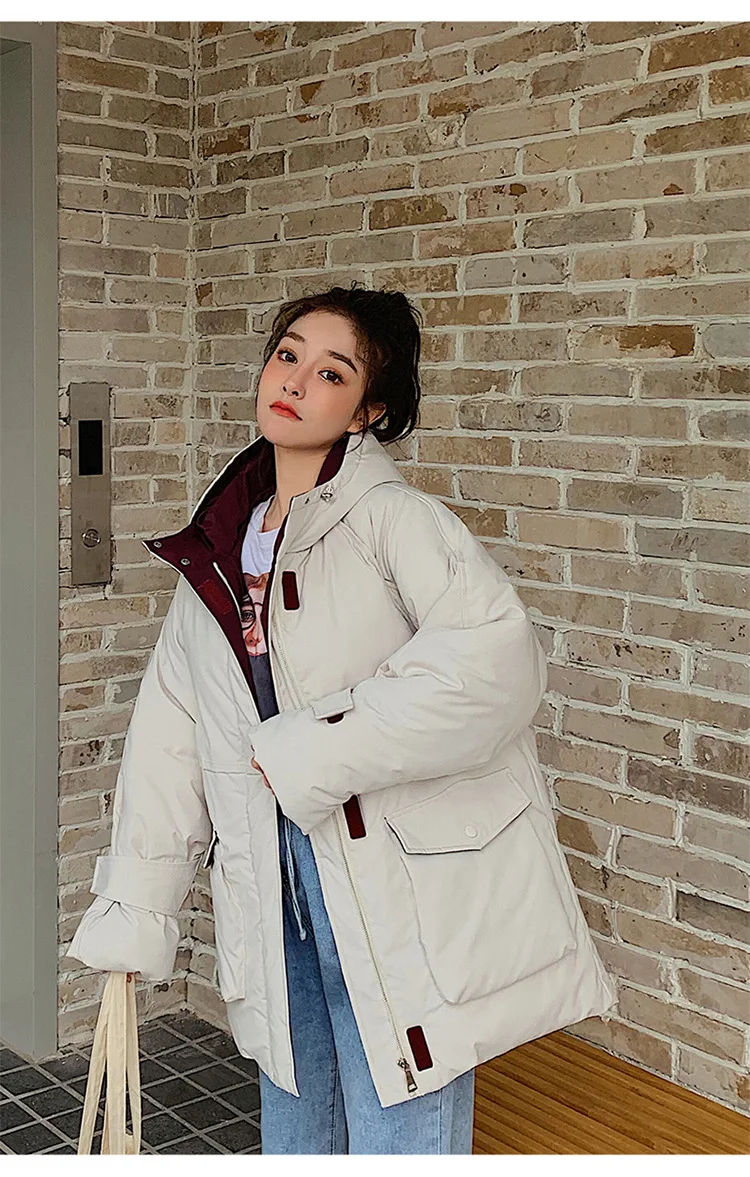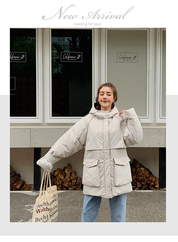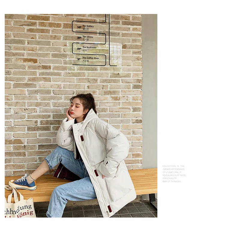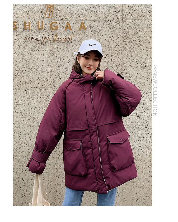 Женская длинная куртка из хлопка BUENOS, свободная зимняя куртка в Корейском стиле, теплая парка большого размера в Корейском стиле, 2019