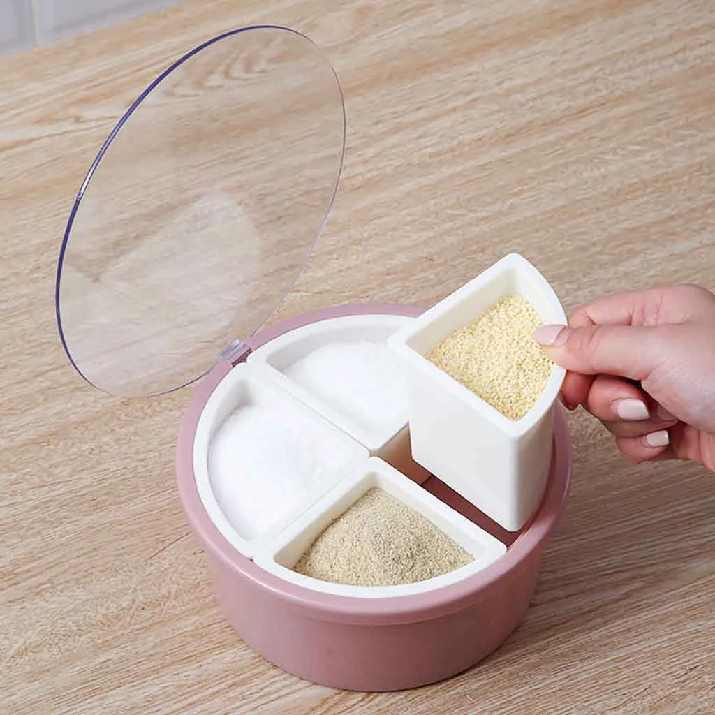 Дизайн с несколькими отделениями, может хранить разные специи, каждая коробка поставляется с маленькой ложкой, чтобы предотвратить запах, контролировать дозировку