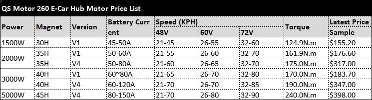 QS мотор 2601500 Вт-5000 Вт e-автомобильный концентратор список моторов