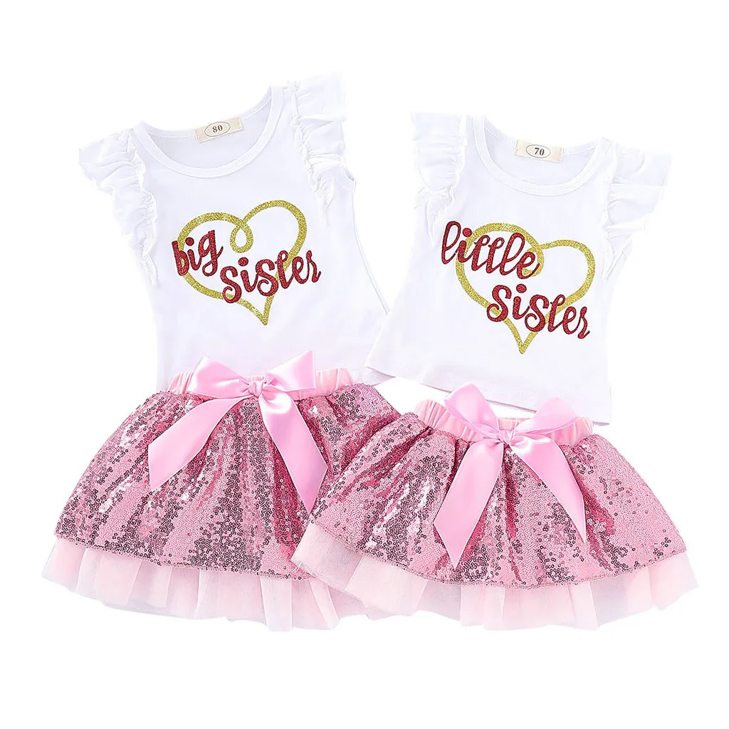 Детская одежда для маленьких девочек; одежда для крупных сестер; топы; платье-пачка; комплект одежды с юбкой