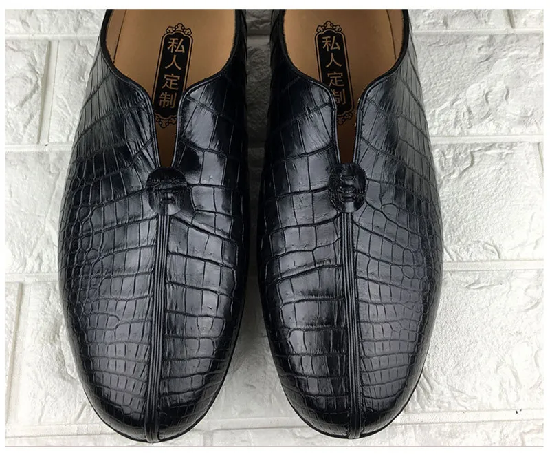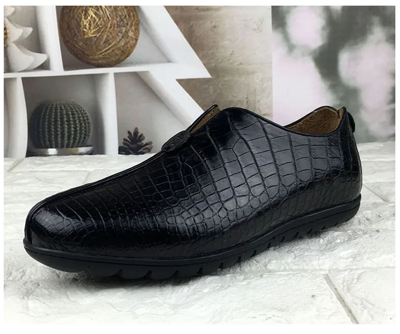 Настоящая Крокодиловая Кожа; Мягкая резиновая подошва; Мужская удобная обувь из натуральной кожи аллигатора; Мужские слипоны с круглым носком