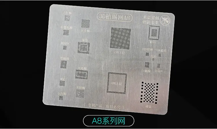 Новые запатентованные трафареты 3D BGA rework groove: MJ 3D BGA шаблон трафарета BGA. Трафарет 3D Reballing используется для посадки олова на iPhone BGA. Этот BGA реболлинг инструмент доступен для iPhone 6/6 s/6 plus/6 s plus, 7/7 plus + 8/8 Plus + X + XS MAX + XR, трафарет 3D BGA reballing является хорошим помощником для ремонта iPhone.