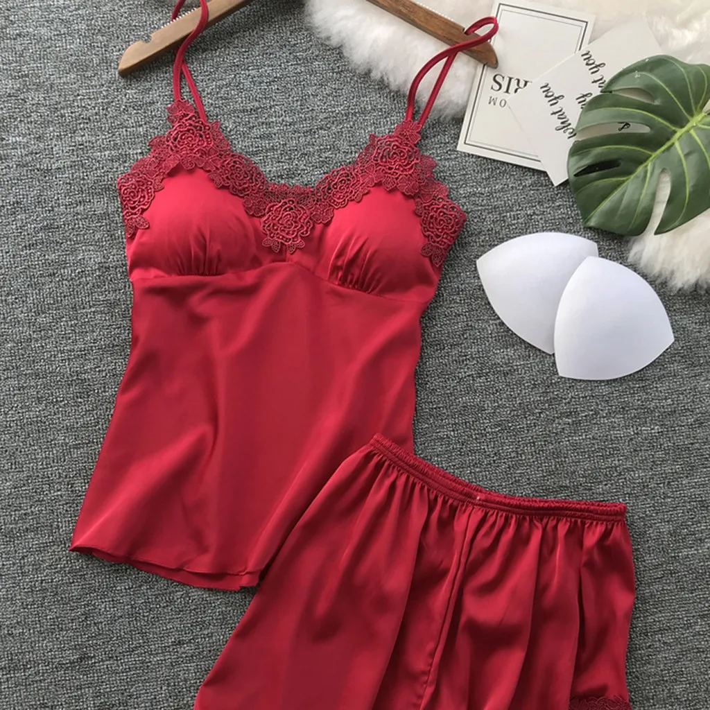 Горячая Женская Сексуальная атласная пижама на бретельках с v-образным вырезом, кружевное нижнее белье, домашняя ночная рубашка, комплект нижнего белья, Прямая поставка, пижамы de mujer Wd4