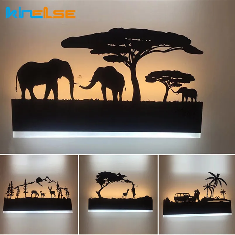 Креативный современный светодиодный настенный светильник, бра, 16 Вт, акриловый лес, животные, черный шелк...