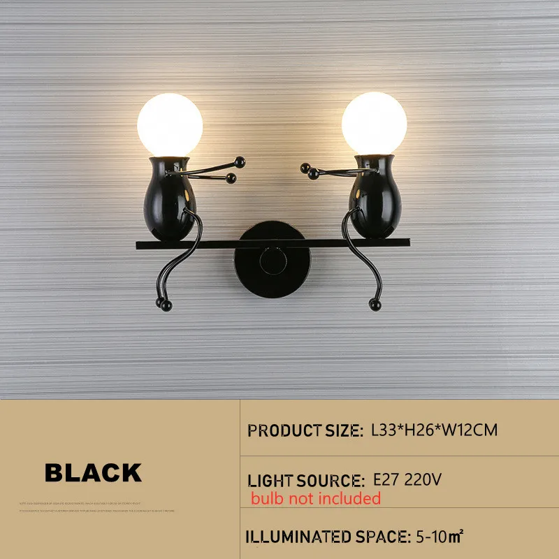 Простой Модный креативный настенный светильник с рисунком маленького человека Железный Ретро светодиодный настенный светильник f...
