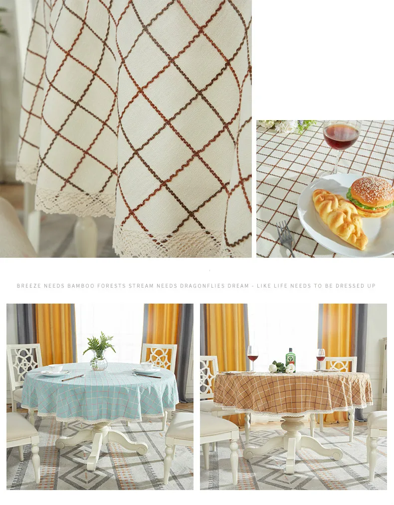 Круглая скатерть из хлопка и льна покрытие стола клетчатые с изображениями на тему Рождества скатерть с кружевным краем Свадебная вечеринка Декор