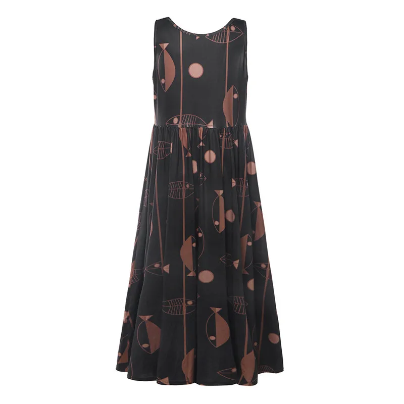 Модное женское винтажное свободное платье макси без рукавов с круглым вырезом и принтом рыбы