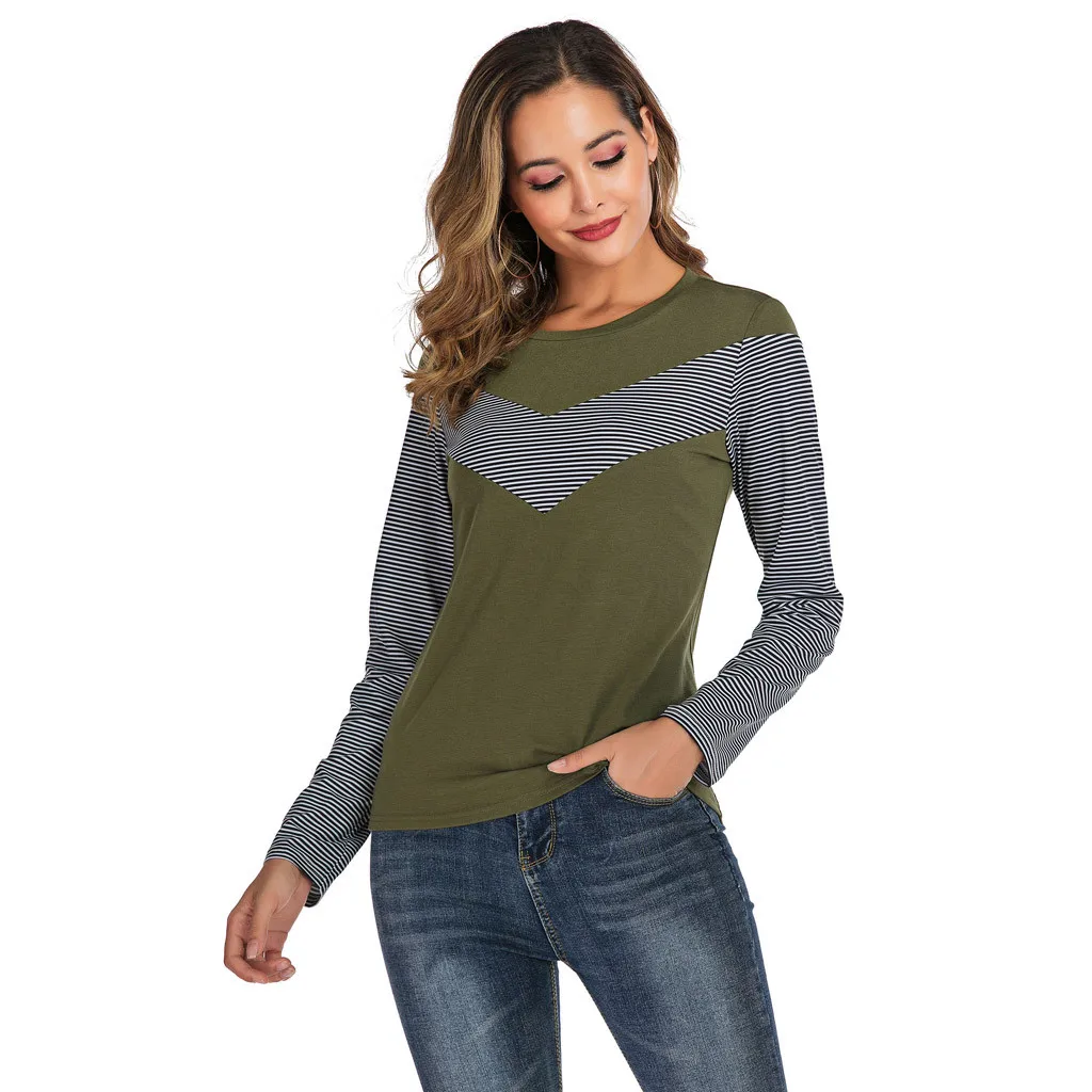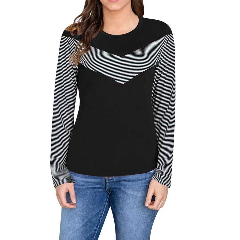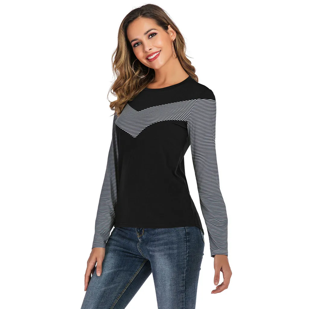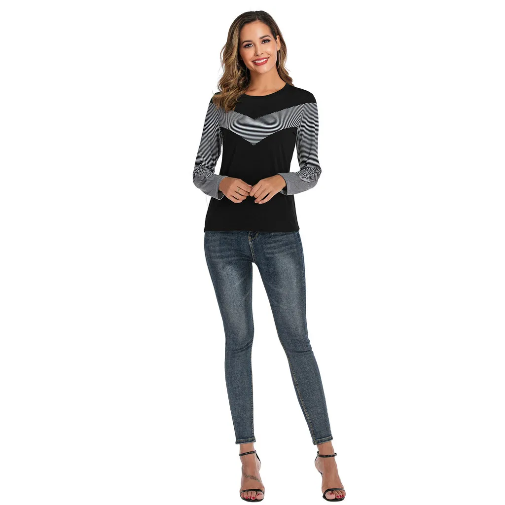 Женская Повседневная полосатая блузка с принтом, рубашка с длинным рукавом, круглый вырез, пуловер, топы