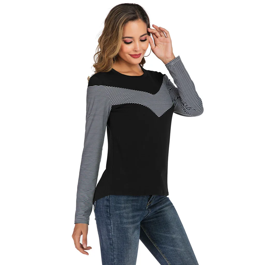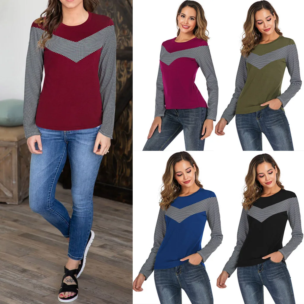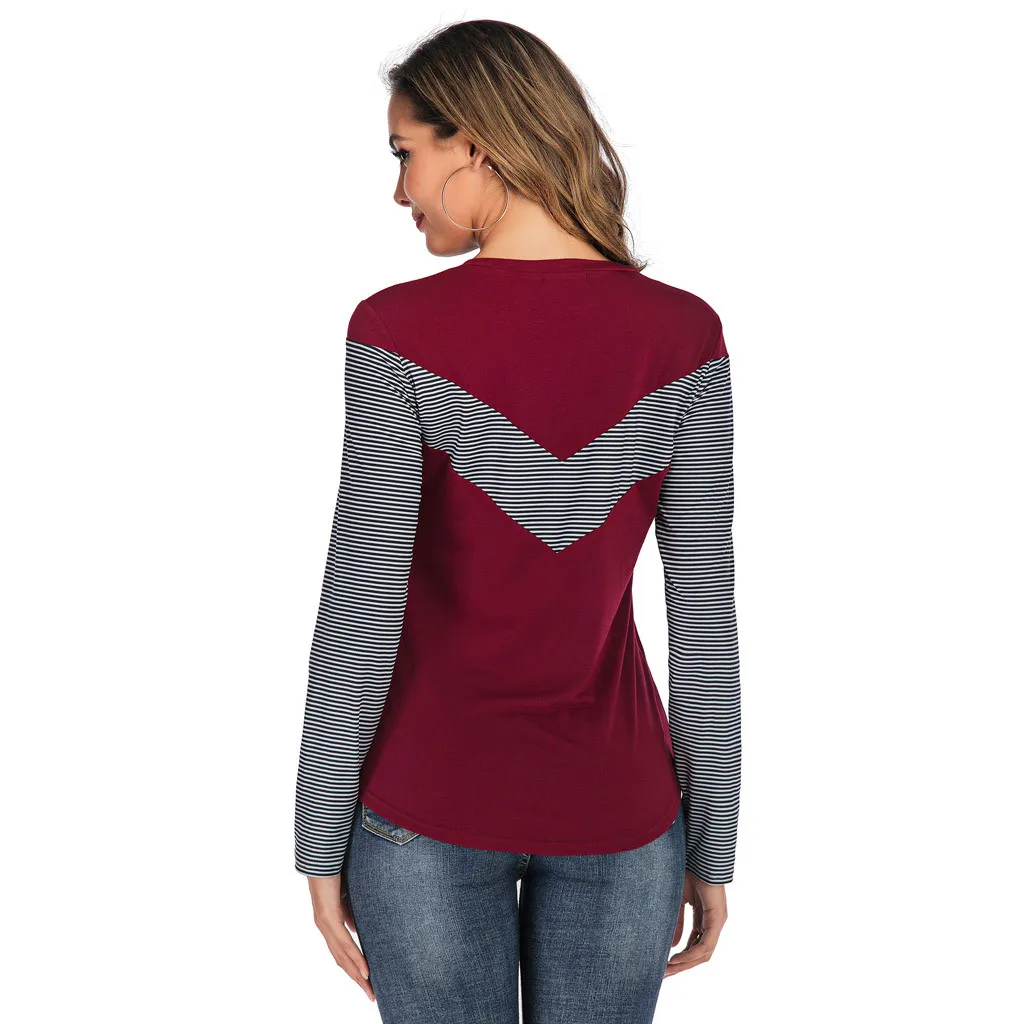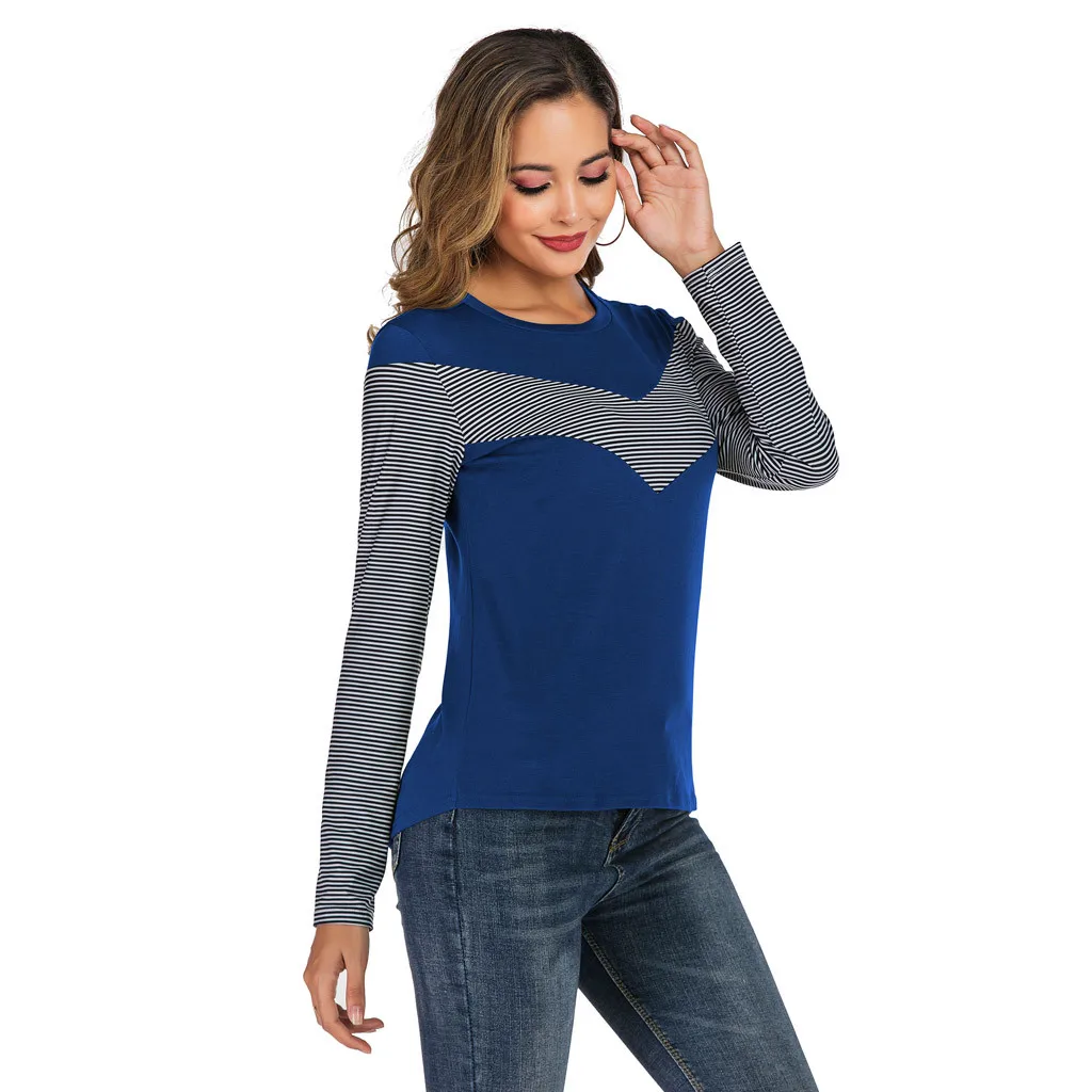 Женская Повседневная полосатая блузка с принтом, рубашка с длинным рукавом, круглый вырез, пуловер, топы