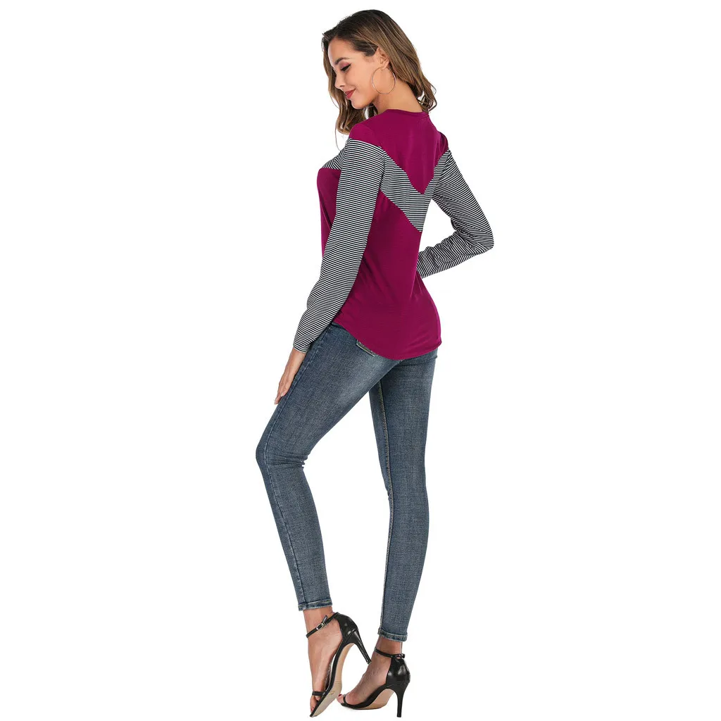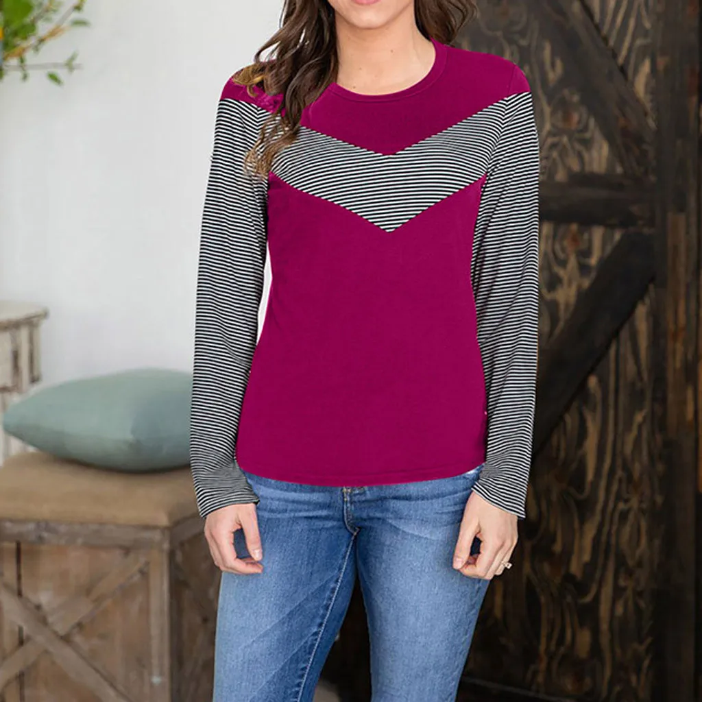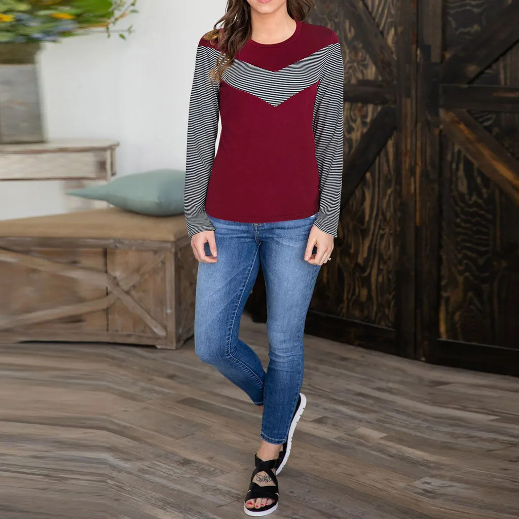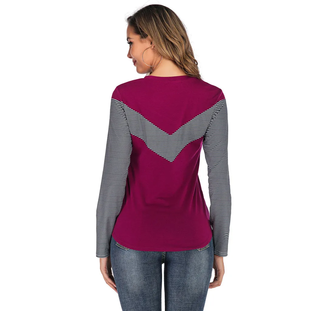Женская Повседневная полосатая блузка с принтом, рубашка с длинным рукавом, круглый вырез, пуловер, топы