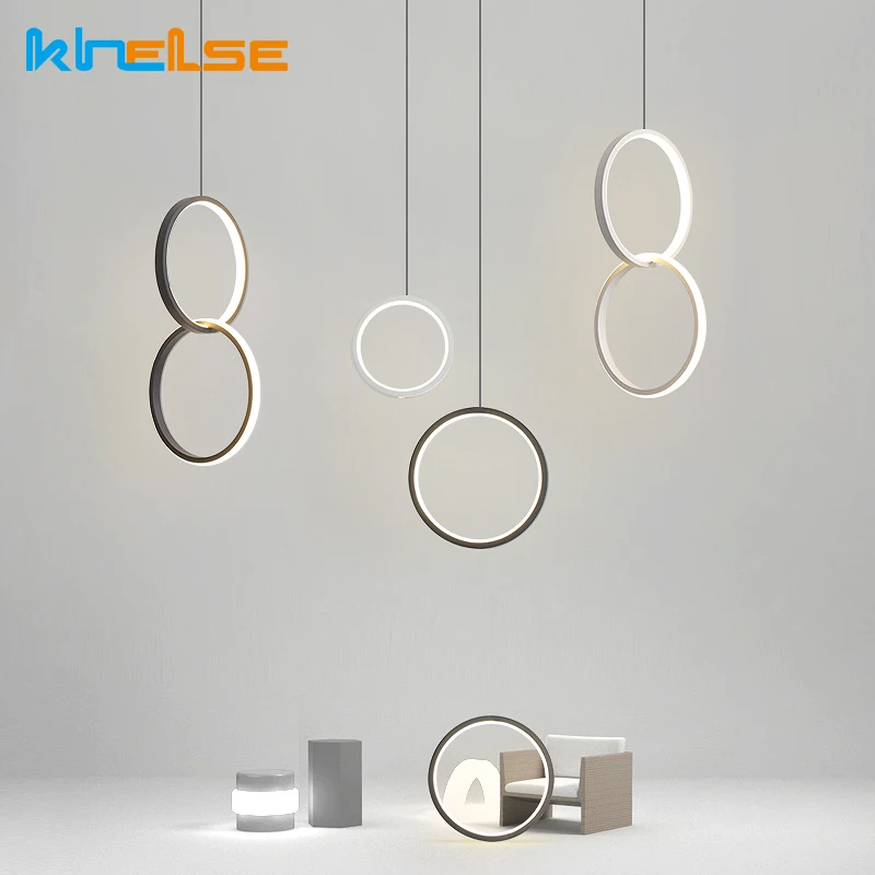 Современный круглый светодиодный подвесной светильник с кольцом для спальни, столовой, бара, прикроватной тумбочки...