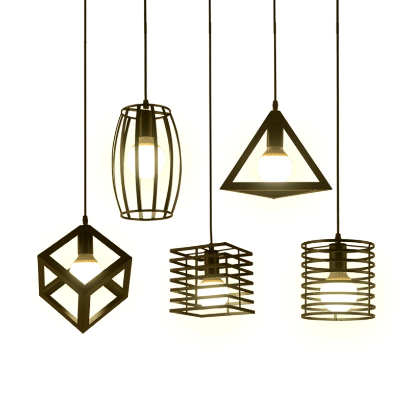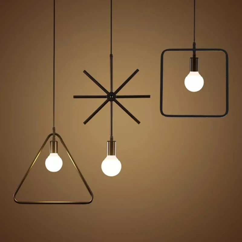 Винтажный кованый светодиодный подвесной светильник E27 ретро геометрический треугольный/круглый Chandel...