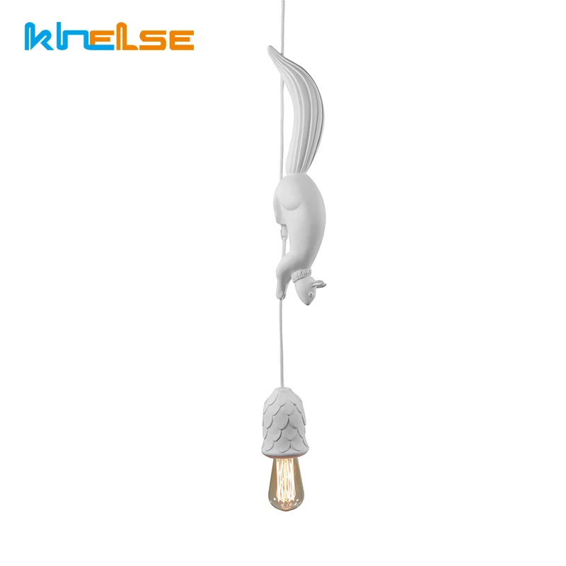 Скандинавский креативный подвесной светильник с милой смоляной белкой, светодиодный подвесной светильник для детей Kitc...