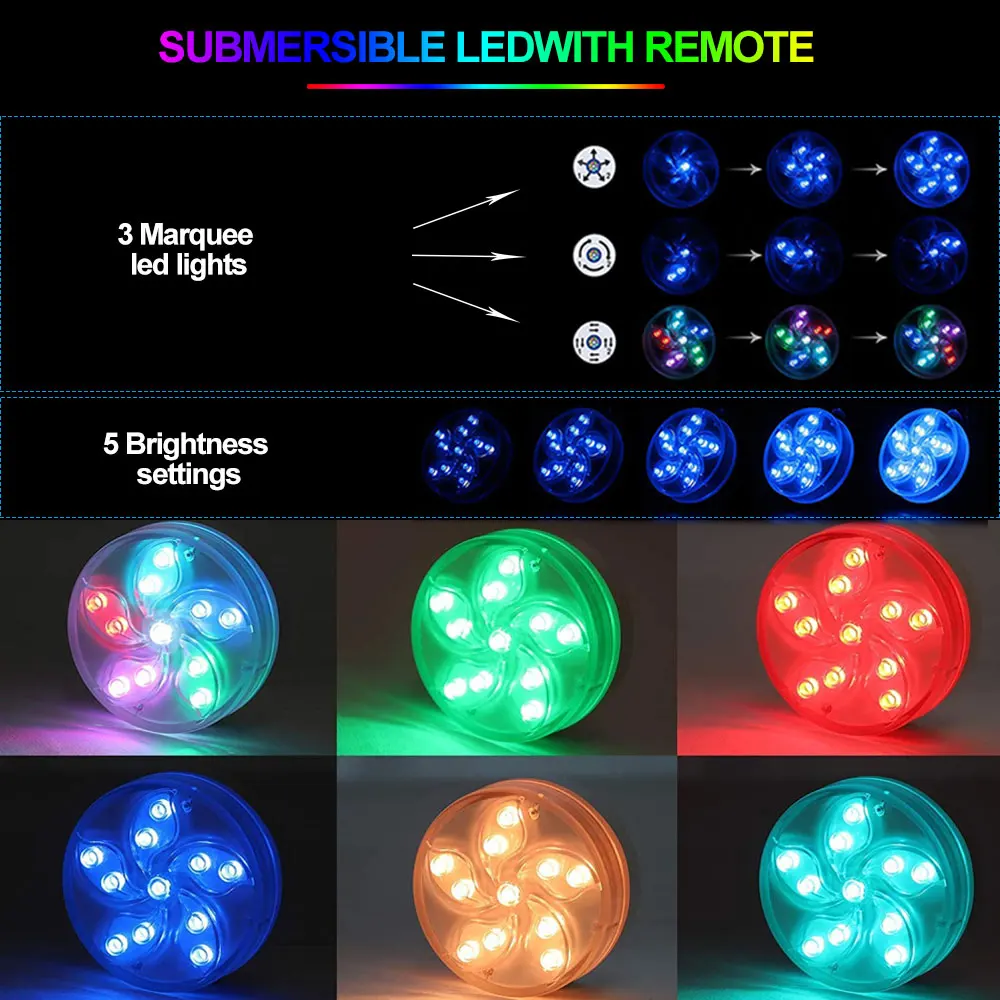 Погружные светодиодные светильники для бассейна-100% водонепроницаемость IP68 с сертификатом, идеально подходит для освещения любых заполненные контейнеры для воды. Использование светодиодных ламп для дайвинга в качестве декоративной лампы для придания элегантности и уюта вашему дому.