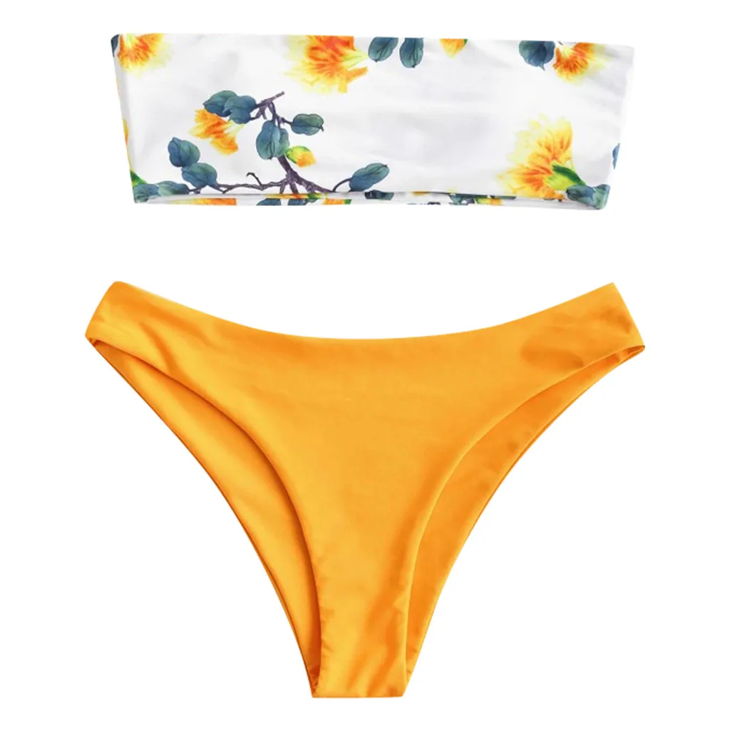 Женский комплект из двух предметов с цветочным принтом, пуш-ап, бюстгальтер с подкладкой, пляжный комплект бикини, купальник, купальник
