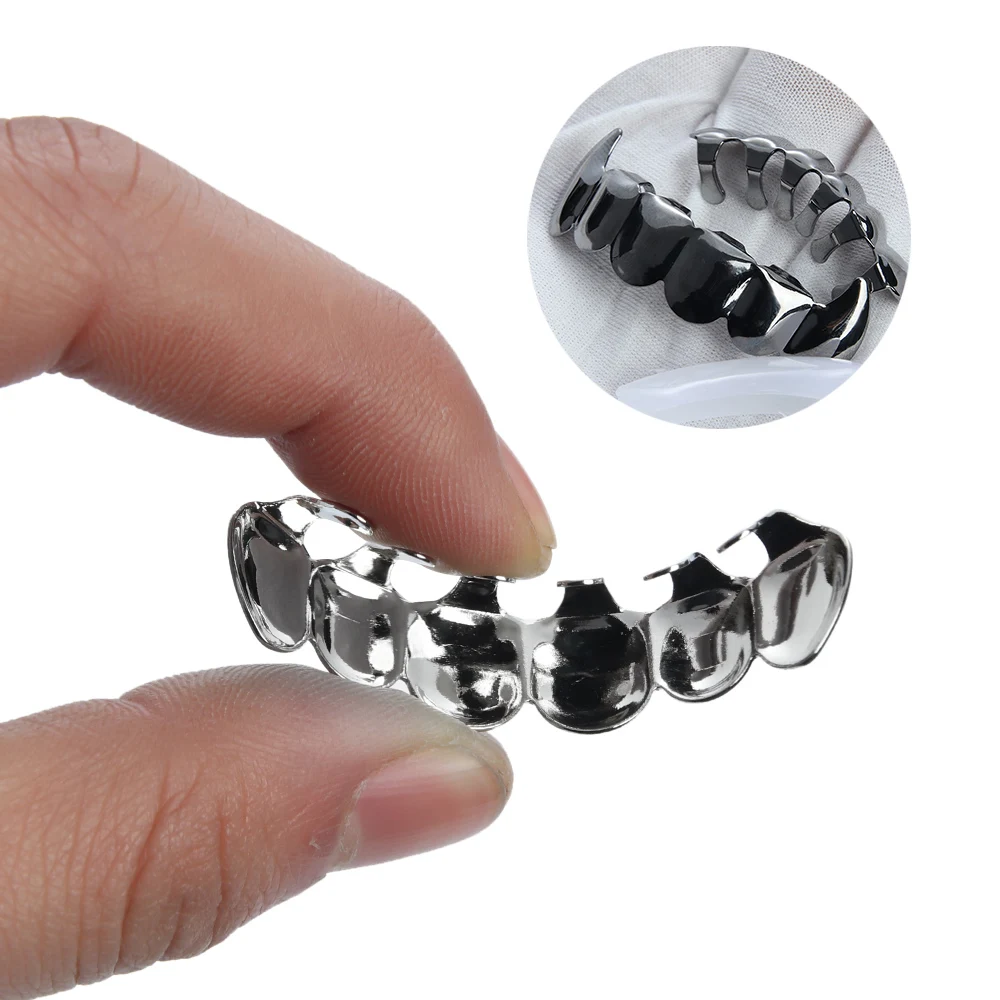 Тип: хип-хоп ЗУБЫ Grillz Материал: медь + силикон Размер: один размер подходит всем Вес: 7-12 г Цвет: Золотой, розовое золото, черный, серебристый Пол: унисекс Размер: верх: 5*1 см; Низ: 4*1 см Посылка включает в себя: 1 * зубцы
