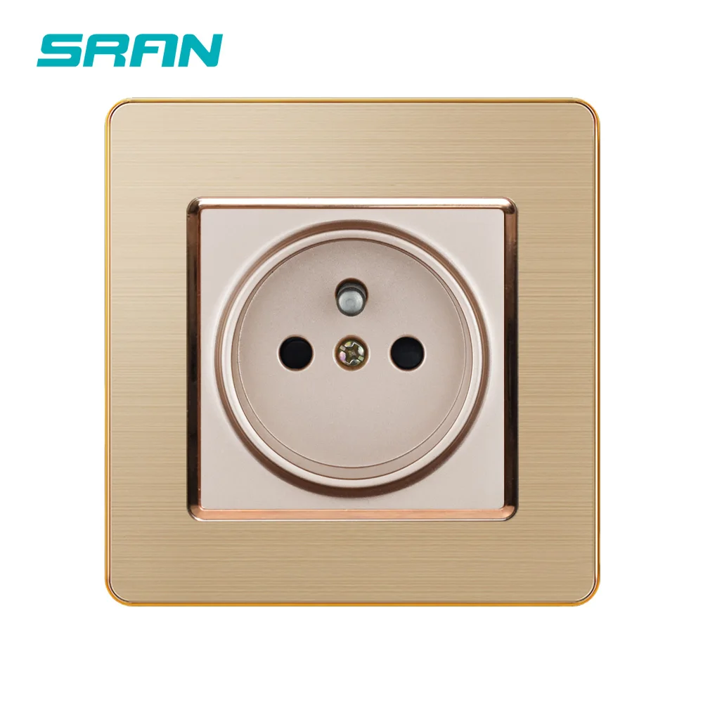16А французская розетка 86 мм * 86 мм должна использовать квадратную монтажную коробку золото/белый/черный стандартный заземление безопасности дверь Матовая нержавеющая сталь, металлическое покрытие
