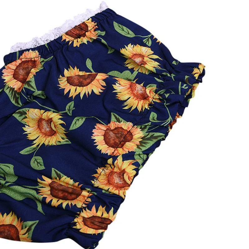 2 цвета, пуловер с цветочным рисунком комплект хлопковой одежды для маленьких девочек, футболка с бахромой + шорты с цветочным рисунком + повязка на голову, 3 предмета, Одежда для младенцев