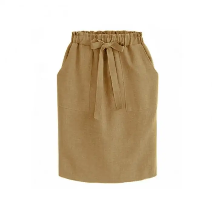 Женское платье средней длины, Однотонная юбка-карандаш с бантом и высокой талией для лета, NFE99