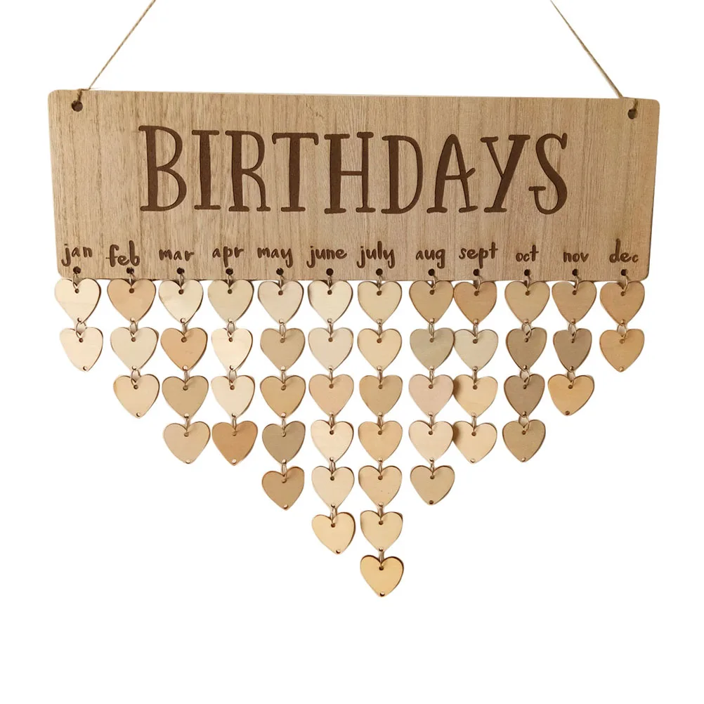 1 шт. календарь дни рождения буквы практичные деревянные DIY в форме сердца пластины висит декор доска напоминаний для друзей семьи напоминания