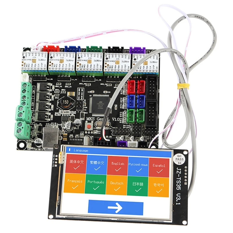 Можно напрямую подключить 2004LCD дисплей и 12864LCD дисплей, может поддерживать TFT28, TFT32 контактный экран. ось XYZ, соответственно, использует различные цветовые клеммы, чтобы соответствовать двигателю и концевому переключателю, удобная проводка. удобный дизайн, используйте различные цветовые клеммы, чтобы отличить направление движения, уменьшить вероятность вставки и обратного хода, Чтобы предотвратить повреждение материнской платы из-за вставки диска.